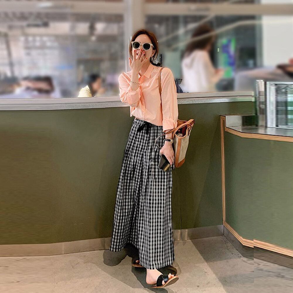 チェック柄 レディース スカンツ ロング カジュアル スカーチョ 可愛い 韓国ファッション ゆったりパンツ 薄手
