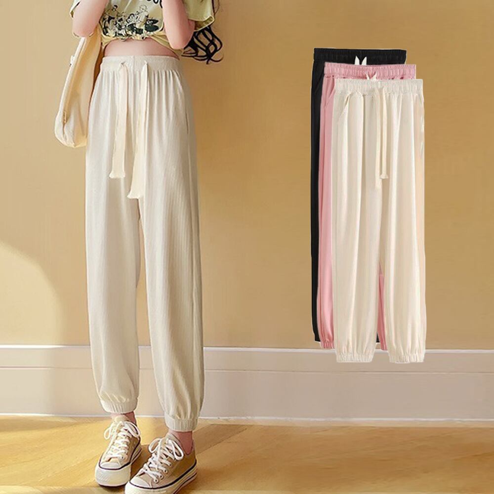 ハイウエストボトムス リラックス イージーパンツ 裾ゴム ダンス衣装 ルームウェアゆったり カジュアル 大人 春夏秋
