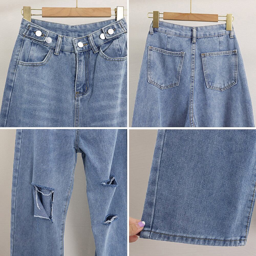 ダメージ デニムパンツ ハイウエスト美脚