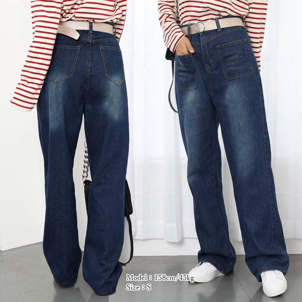 お洒落 ハイウエストデニムパンツ レディース フロントポケット ウォッシュ加工デニム 体型カバー美脚脚長 大人カジュアル
