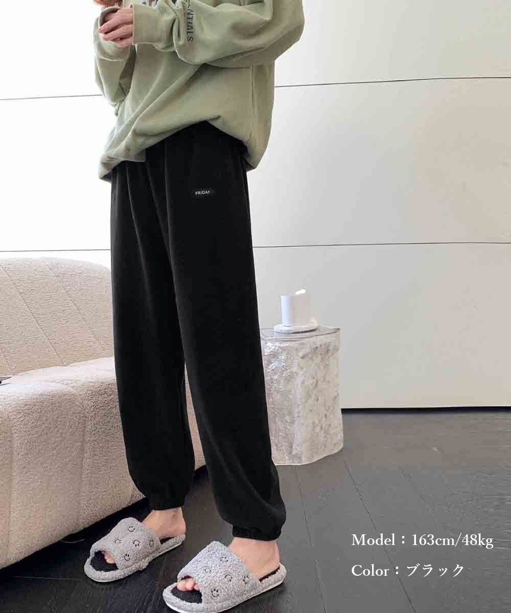 レディース ウエストゴム パジャマパンツ 部屋着 ナイトウェア 裾ゴムルームパンツ 着やせボトムス 保温防寒 秋冬室内着