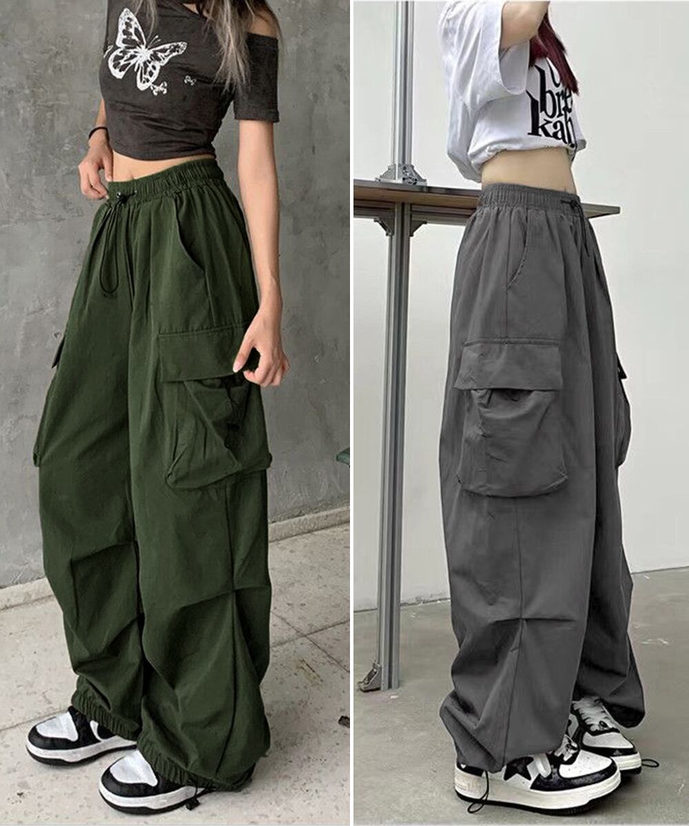 ミリタリーパンツ 薄手パラシュートパンツ 春夏スポーツパンツ ダンス衣装 韓国風 ウエストゴム ストリート ワイドパンツ