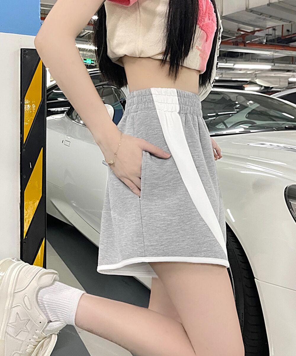 レディース カジュアル ショートワイドパンツ ウエストゴム ゆったり スポーツショーパン バイカラーヨガパンツ 部屋着夏