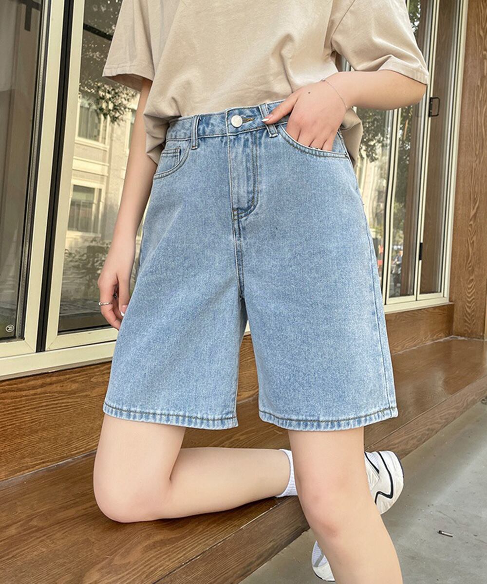 韓国ファッション Gパン ひざ上丈 ボトムス シンプル