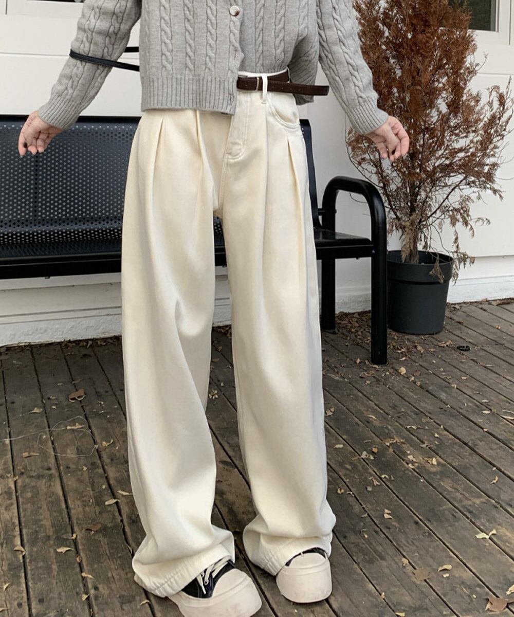 タックワイドデニムパンツレディース韓国風