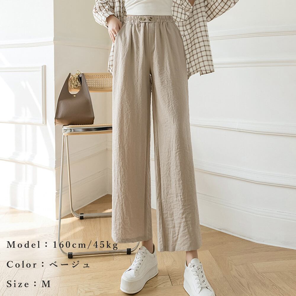 リラックス ロングパンツ 無地 おしゃれ 九分丈 カジュアルパンツ 着やせ ストレートパンツ ハイウエスト