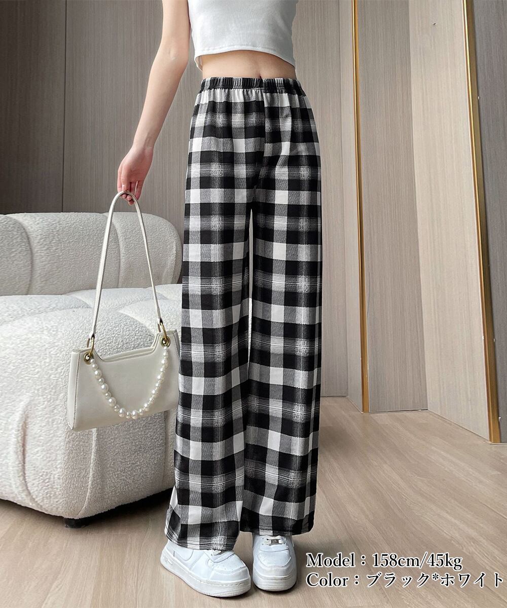 寒い季節にぴったりのチェック柄裏起毛パンツ。