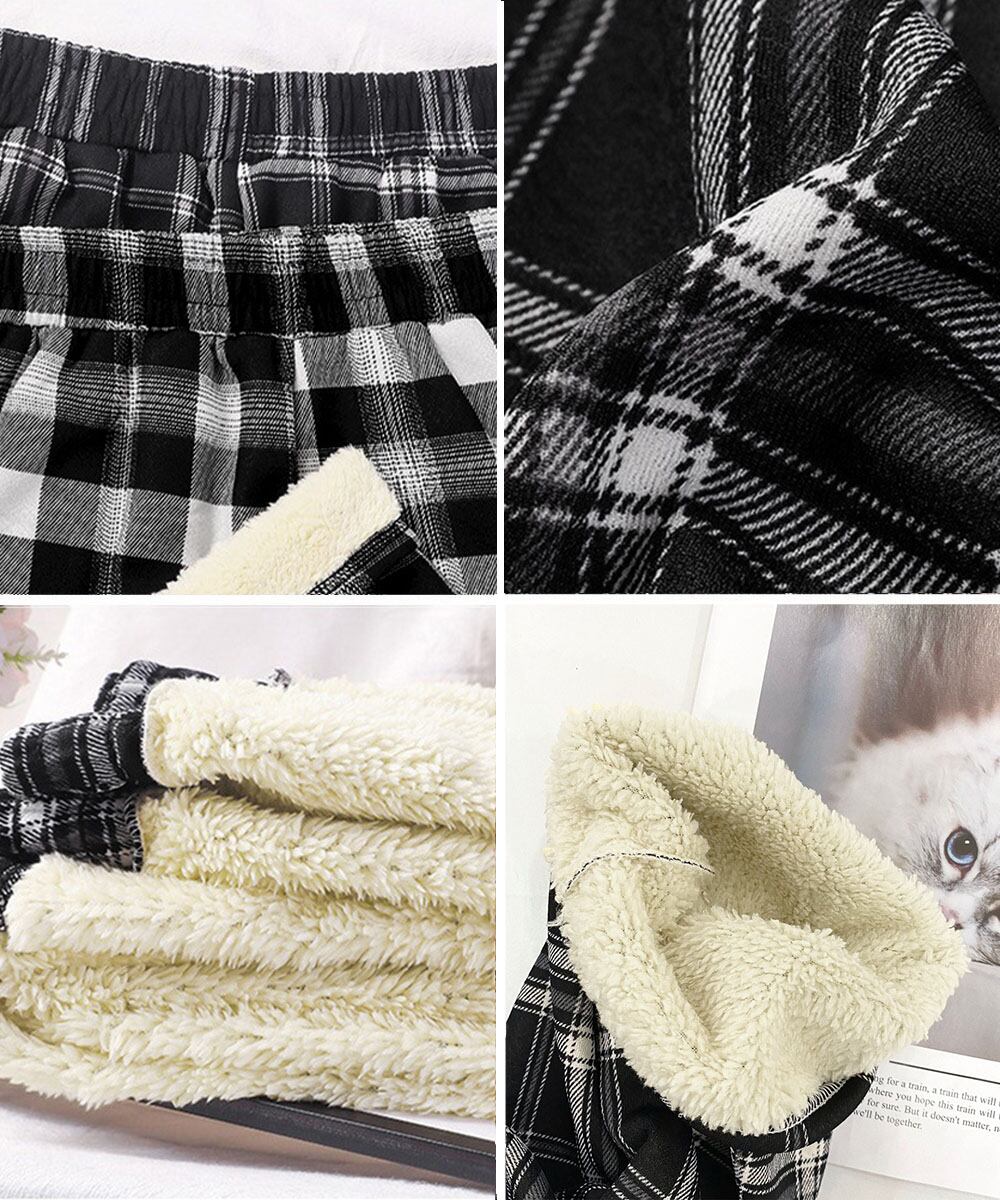 裏起毛チェック柄パンツ 裏ボアパンツ防寒