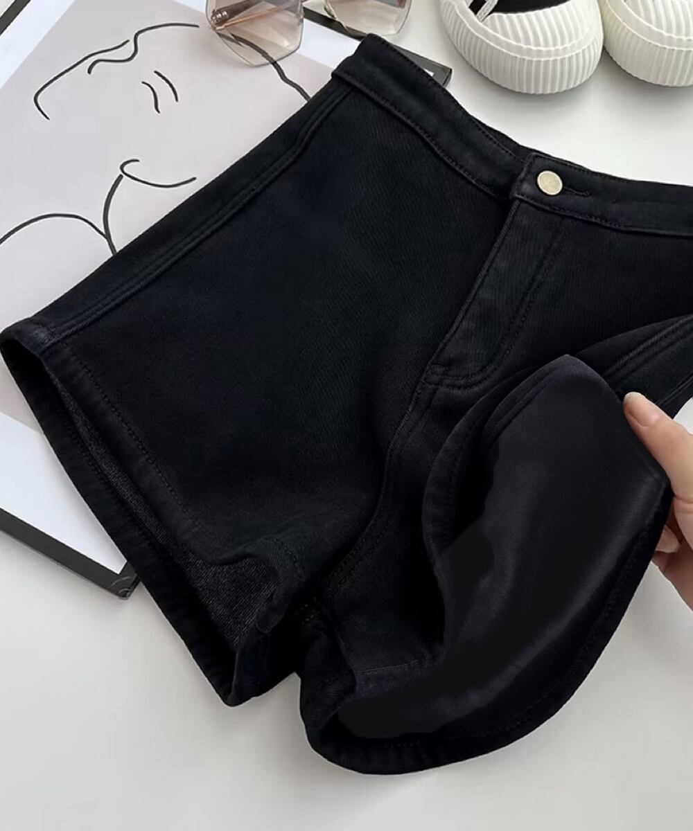 内側が起毛素材なので、肌寒い日でも暖かさを保ち、快適な履き心地のデニムショートパンツ。