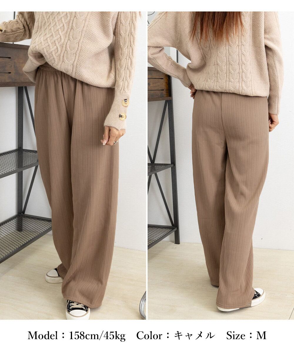 セミワイドシルエットが脚を美しく見せ、低身長の方でも脚長見えが期待できる
