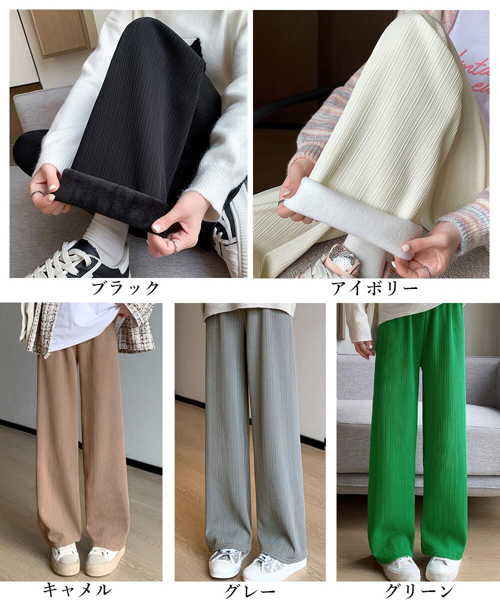 ハイウエスト 裏起毛ワイドパンツ あったか 裏フリース イージーパンツ 秋冬ボトムス 美脚脚長 防寒 ロングパンツ 厚手