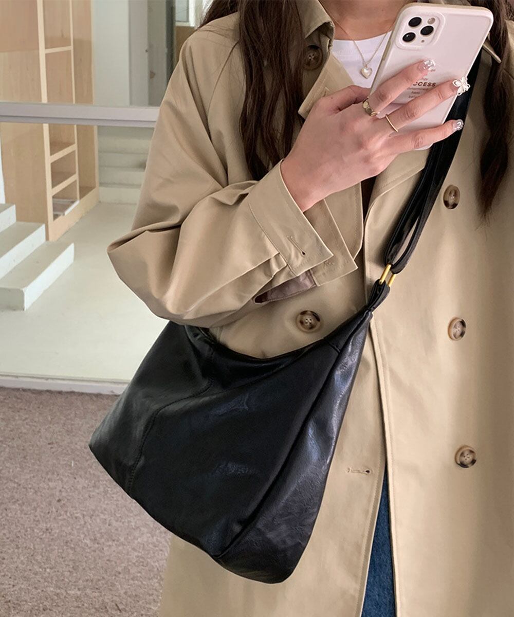 やわらかく、もっちりとした肌馴染みの良いPUレザーを使用した、使い心地抜群のショルダーバッグ