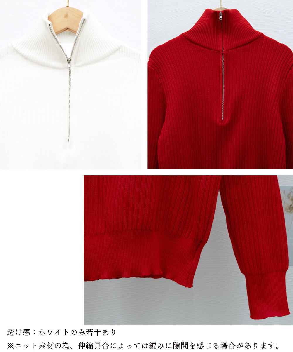 ニットトップス ハーフジップ 春秋冬