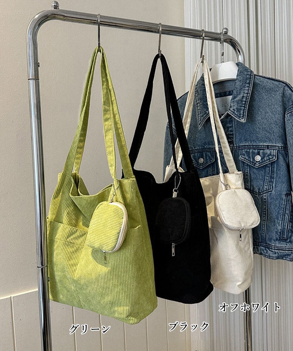 ポーチ付きコーデュロイトートバッグ大容量