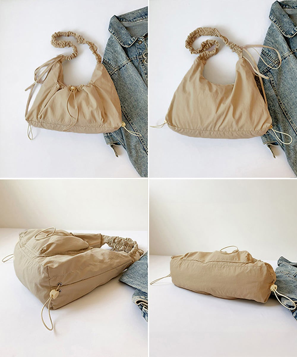 ストリングギャザー ワンショルダー鞄春 無地軽いバッグ旅行