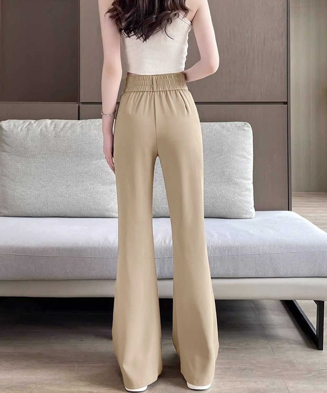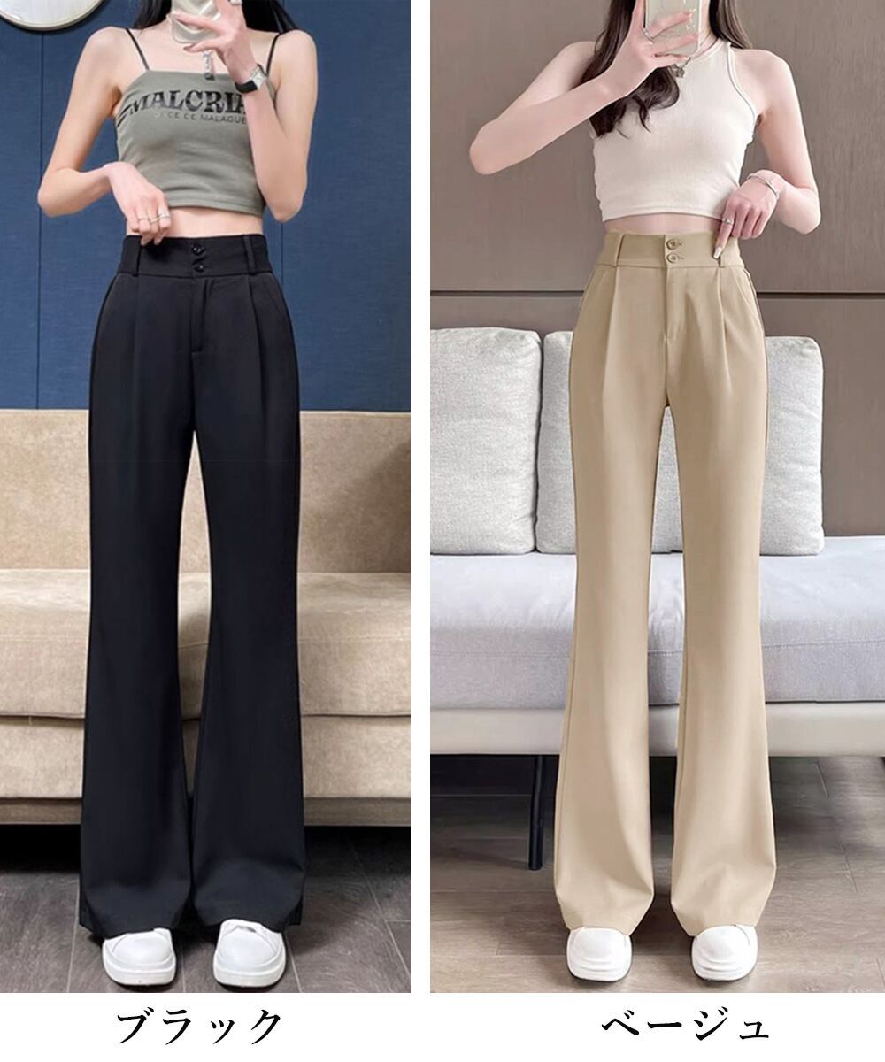 ハイウエスト ダブルボタン タックボトムス 美脚脚長ロングパンツ 着やせストレートパンツ お洒落楽ちんイージーパンツ春秋